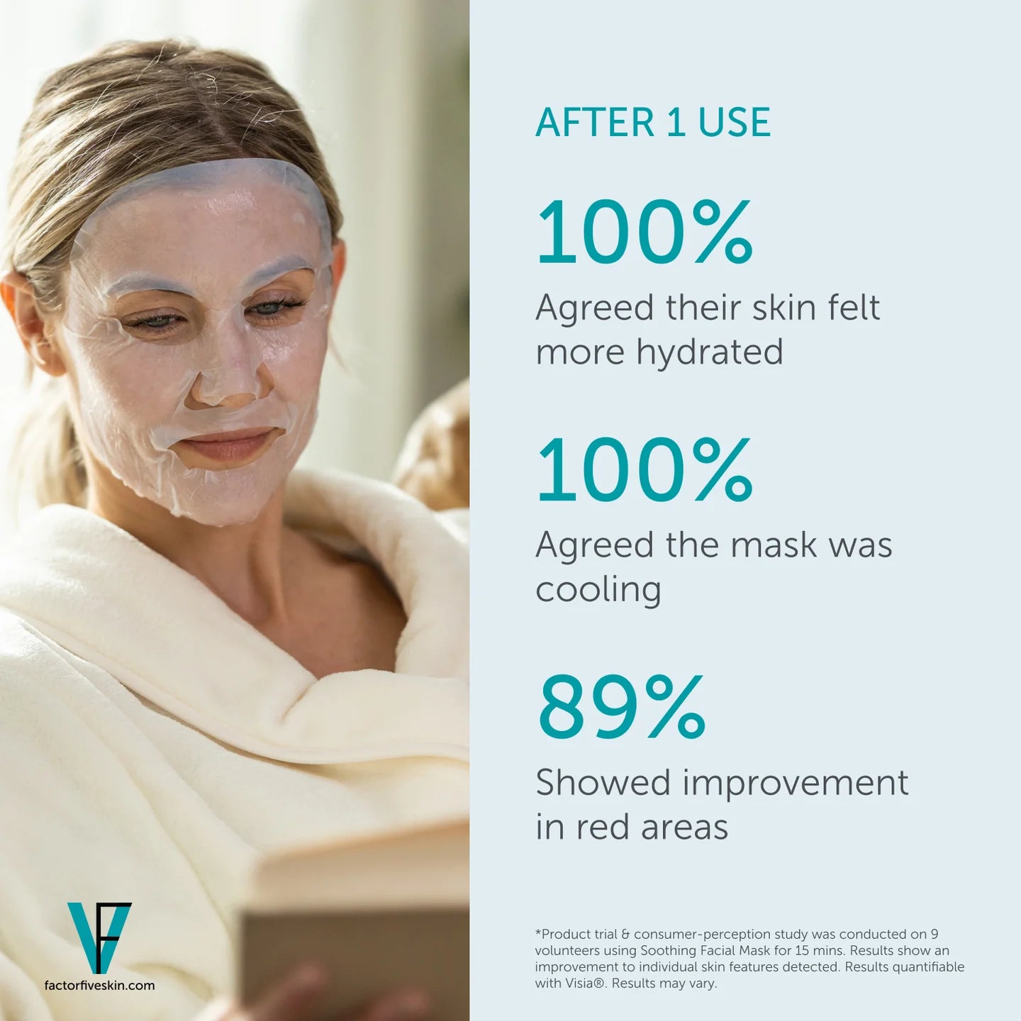 A pack of five bio cellulose sheet masks that cling comfortably to your skin while delivering a powerful blend of human stem cell factors and nourishing, natural botanicals like aloe, green tea extract, and hemp seed oil to soothe and replenish your skin.