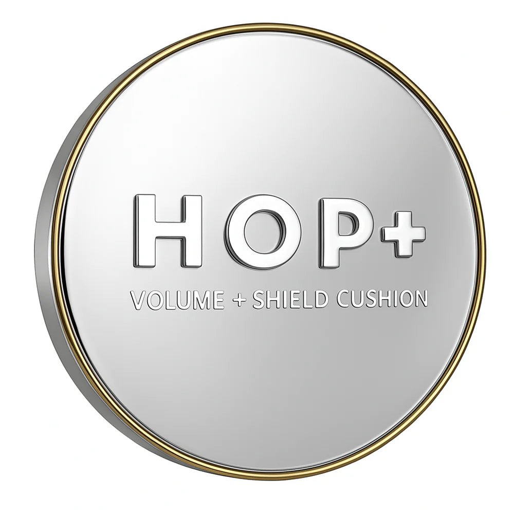 The HOP+ Volume Shield Cushion combines makeup and skincare in one lightweight compact. Upgraded with a higher concentration of PLLA, Peptides, Niacinamide, and Adenosine, this formula helps visibly smooth, firm, and brighten the skin while providing sheer, buildable coverage.
