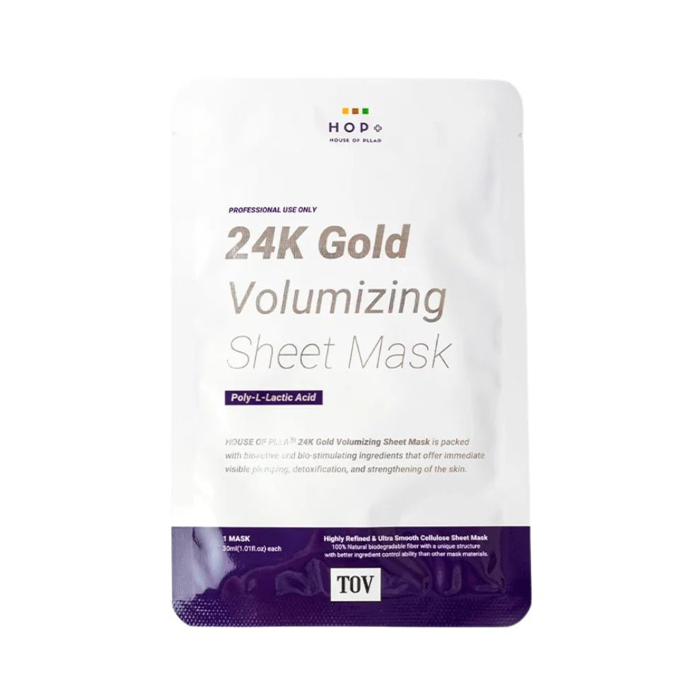 The New HOP+ 24K Gold Volumizing Mask delivers an intensive boost of bioactive and bio-stimulating ingredients that provide immediate plumping, detoxification, and visible strengthening of the skin.